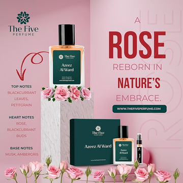 Azeez Al Ward opens with soft, refreshing notes that gracefully unfold into a heart of luxurious rose petals—lush, romantic, and captivating.